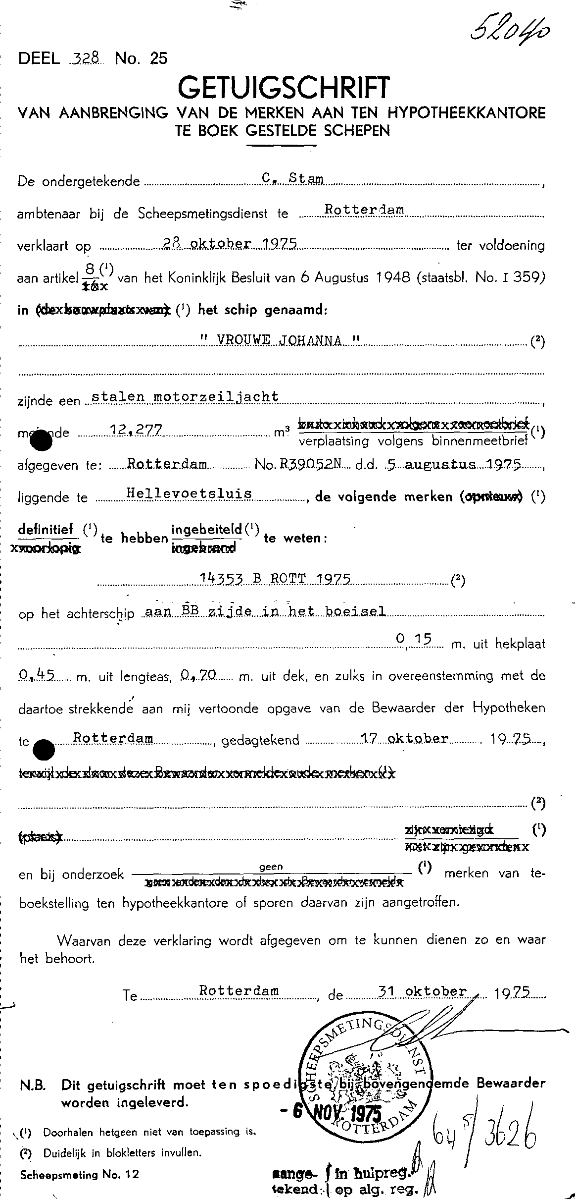 Brandmerk: 14353 B Rott 1975 |
